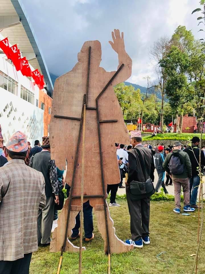 जति जति विधान महाधिवेशन स्थलमा पुगीन्थ्यो त्यति त्यहि ओली डमी भेटीन्थे । यसबाट बुझ्न सकिन्थ्यो कि एमालेले विधान महाधिवेशनमा विधानमाथि बहस छलफल होइन ओलीको देवत्वकरण गरीरहेको छ । कम्युनिस्टहरु विचारमा बहस गर्छन । व्यक्तिको देवत्करण गदैनन् । ओलीको देबत्वकरण यो पहिलो भने होइन । सामाजिक सुरक्षा योजना लागु गर्ने कार्यक्रमको उद्घाटनको दिनमा पनि ओलीका फोटाहर बानेश्वर देखि प्रज्ञा भवनसम्म थिए ।
