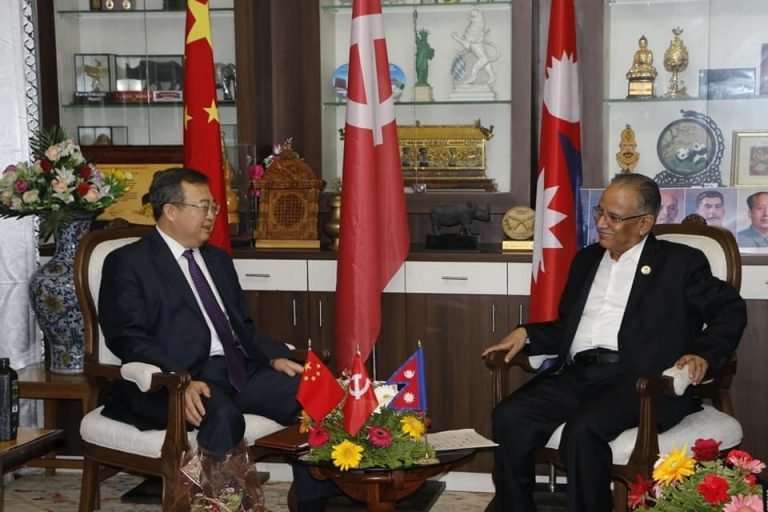 काठमाडौं । चिनियाँ कम्युनिस्ट पार्टी (सीसीपी) विदेश विभाग प्रमुख लिउ जियान्चाओ र नेकपा माओवादी केन्द्रका अध्यक्ष पुष्पकमल दाहाल प्रचण्डबीच भेटवार्ता भएको छ । भेटवार्तामा चीनले नेपालको आन्तरिक मामिलामा आफू पनि हस्तक्षेप नगर्ने र अरु देशले पनि नगरुन् भन्ने चाहना राखेको थियो ।