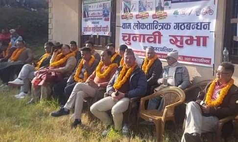 मकवानपुरको थाहा नगरपालिका वडा नम्बर ८ आग्रा, मोरियामा मंगरबार बाम लोकतान्त्रिक गठबन्धनद्वारा आयोजित चुनावी सभामा बक्ताहरुले संविधान, सुशासन र विकासका लागि गठबन्धनलाई जिताउनुपर्ने बताए ।