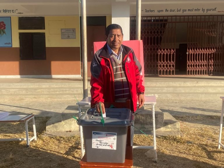 रुपन्देही– २ प्रतिनिधिसभा सदस्य उम्मेदवार पौडेलले डिभिजन सडक केन्द्रको मतदान केन्द्रमा मतदान गरेका हुन् ।
