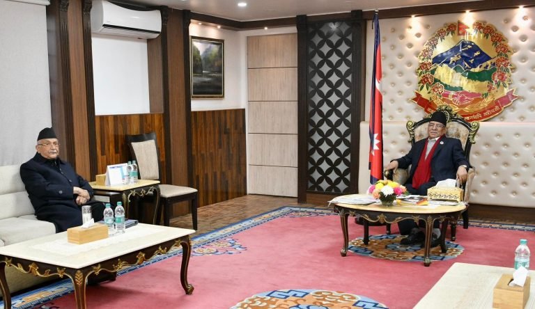 काठमाडौं । प्रधानमन्त्री निवास बालुवाटारमा प्रधानमन्त्री पुष्कमल दाहाल प्रचण्ड र एमाले अध्यक्ष केपी शर्मा ओलीबीच भेटवार्ता भएको छ ।