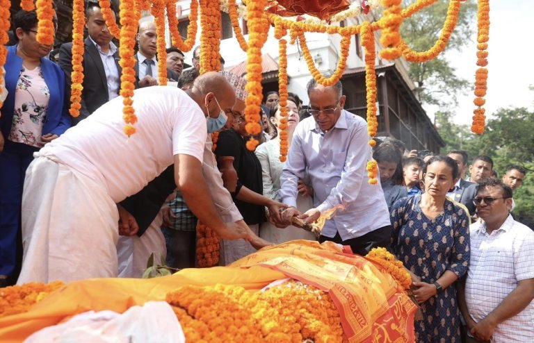 पशुपति आर्यघाटमा सीता दाहाललाई प्रचण्डले दिए दागबत्ती
