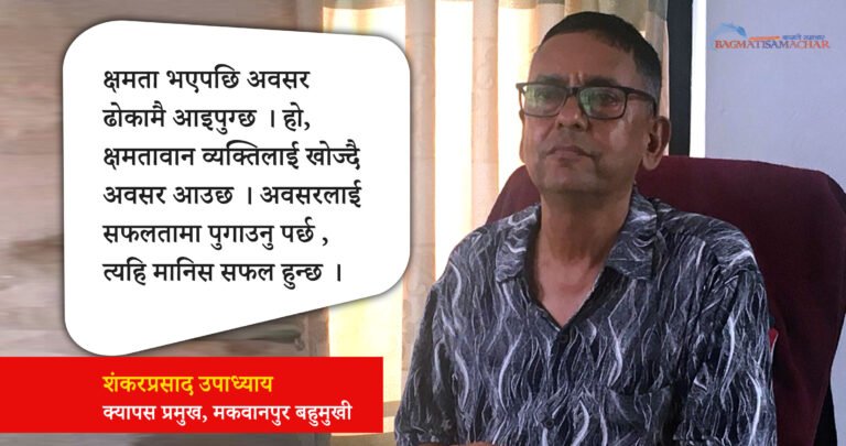 अवसर खोज्दै होइन मेहनतले क्षमता बनाएका र अहिले त्यहि क्षमताको आधारमा मकवानपुर बहुमुखी क्याम्पसका क्याम्पस प्रमुख भएका छन् हेटौंडाका शंकरप्रसाद उपाध्याय ।