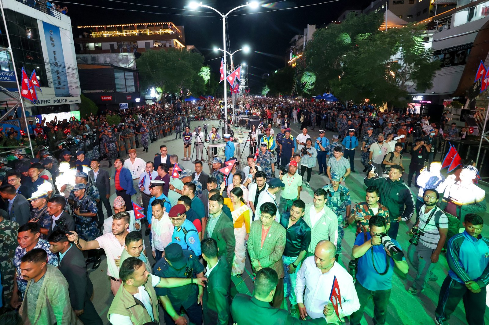 नागरिकस्तरबाट आयोजित विशाल कन्सर्टमा कलाकार र सहभागीलाई उत्साहित तुल्याउन प्रधानमन्त्री ओली कार्यक्रमस्थलमा पुगेका थिए । हातमा राष्ट्रिय झण्डा बोकेर फहराउँदै कन्सर्टको स्टेजजमा प्रधानमन्त्री ओली पुग्दा सहभागीहरुले तालीको गडगडाहटबाट स्वागत गरेका थिए ।