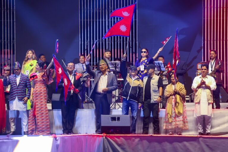 ‘नेसनल डे कन्सर्ट’ मा झण्डा फहराउँदै प्रधानमन्त्री ओलीले संविधान दिवसको खुसी साटे
