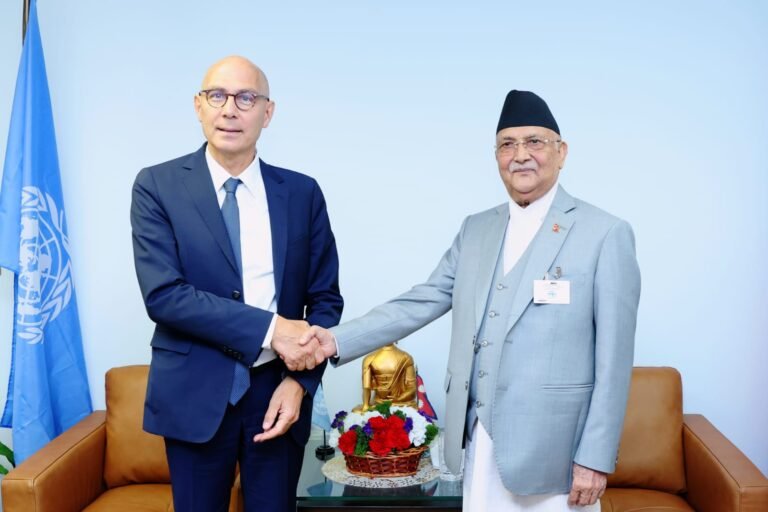 प्रधानमन्त्री ओली संयुक्त राष्ट्रसंघको ७९औँ महासभामा भाग लिन नेपाली प्रतिधिमण्डलको नेतृत्व गर्दै संयुक्त राज्य अमेरिकाको न्युयोर्कमा छन् । त्यहाँस्थित राष्ट्रसंघका लागि नेपालको स्थायी नियोग कार्यालयमा आइतबार प्रधानमन्त्री ओली र मानव अधिकार उच्चायुक्त भोल्करबीच भेटवार्ता भएको हो ।