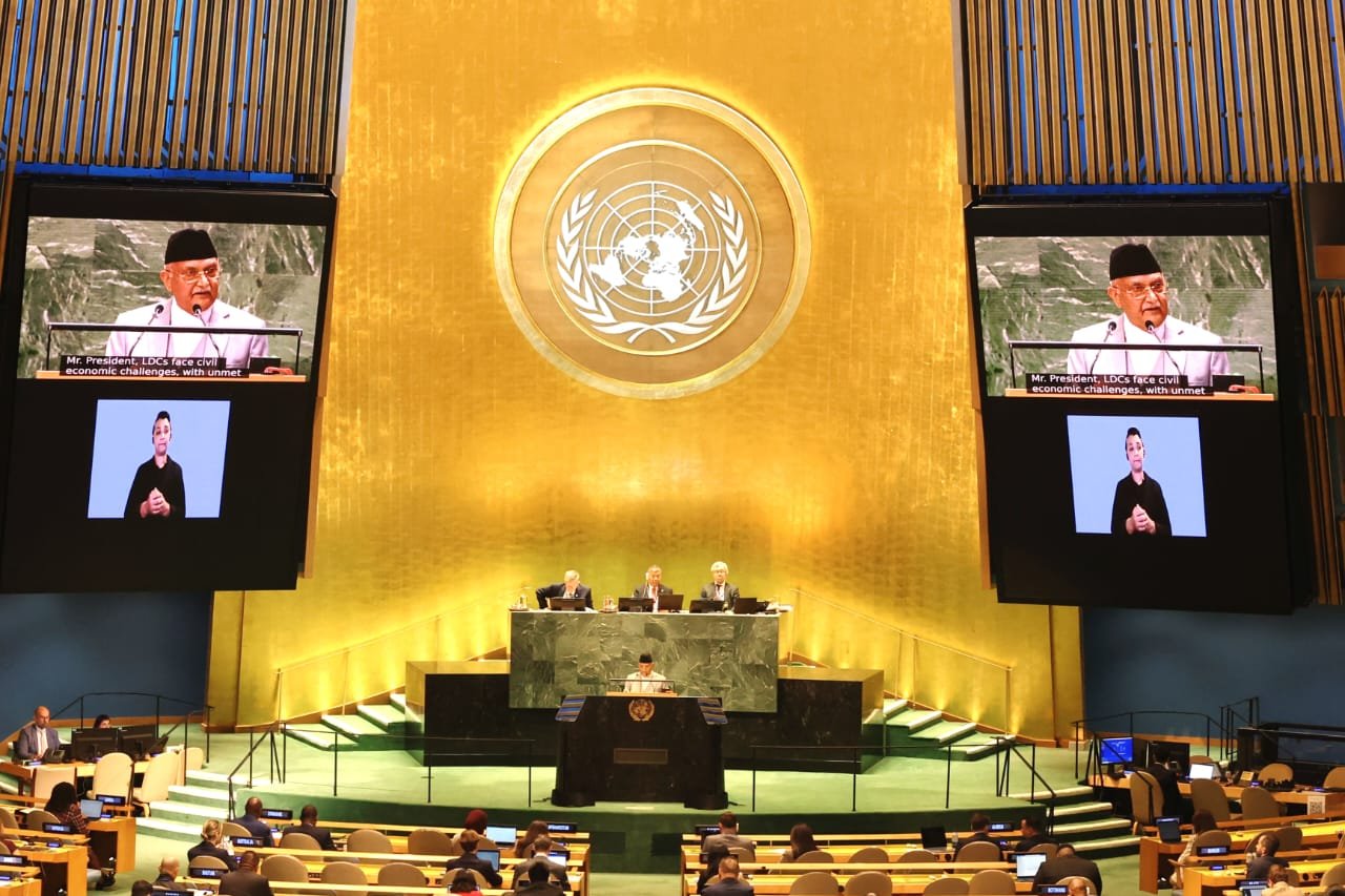 यसअघि प्रधानमन्त्री ओलीले महासभाअन्तर्गत ‘समिट अफ द फ्युचर’को अन्तरक्रियात्मक सत्रको अध्यक्षता गरेका थिए । उनले अल्पविकसित मुलुकका समूहहरुको साझा समस्याका रुपमा रहेको गरिबी निवारणका लागि उत्पादन वृद्धि गरी औद्योगिकीकरण गरिनुपर्नेमा जोड दिए ।