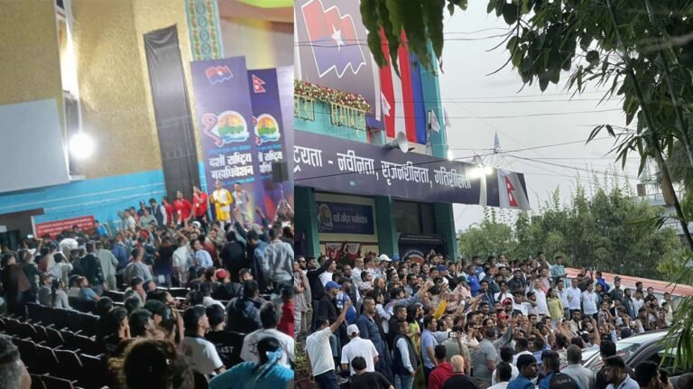 युवा संघको महाधिवेशनमा थेबे पक्ष र पुरी पक्षबीच नाराजुलुस