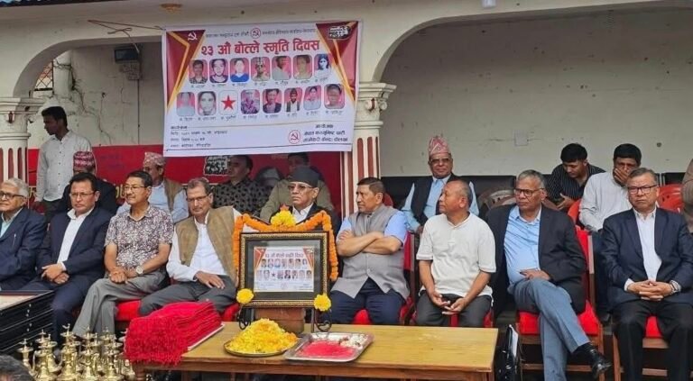 काठमाडौं । नेकपा माओवादी केन्द्रको पार्टी कार्यालय पेरिसडाँडामा दोलखाका बोत्लेमा शहीद भएकाहरुको स्मृति दिवस मनाएको छ । २०५९ साउन १८ गते दोखलाको बोत्लेमा राज्यपक्षबाट मारिएका १४ जनाको स्मृतिमा सभामा राज्यद्धारा भएको उक्त हत्यामा पत्नी गुमाएका शंकर लामाले भक्कानिदै नेताका परिवारहरु शहीद हुँदा स्मृति दिवस मनाइरहेन तर सर्वसाधरणका परिवार शहीद हुँदा वास्ता नगरेको गुनासो गरेका छन् ।