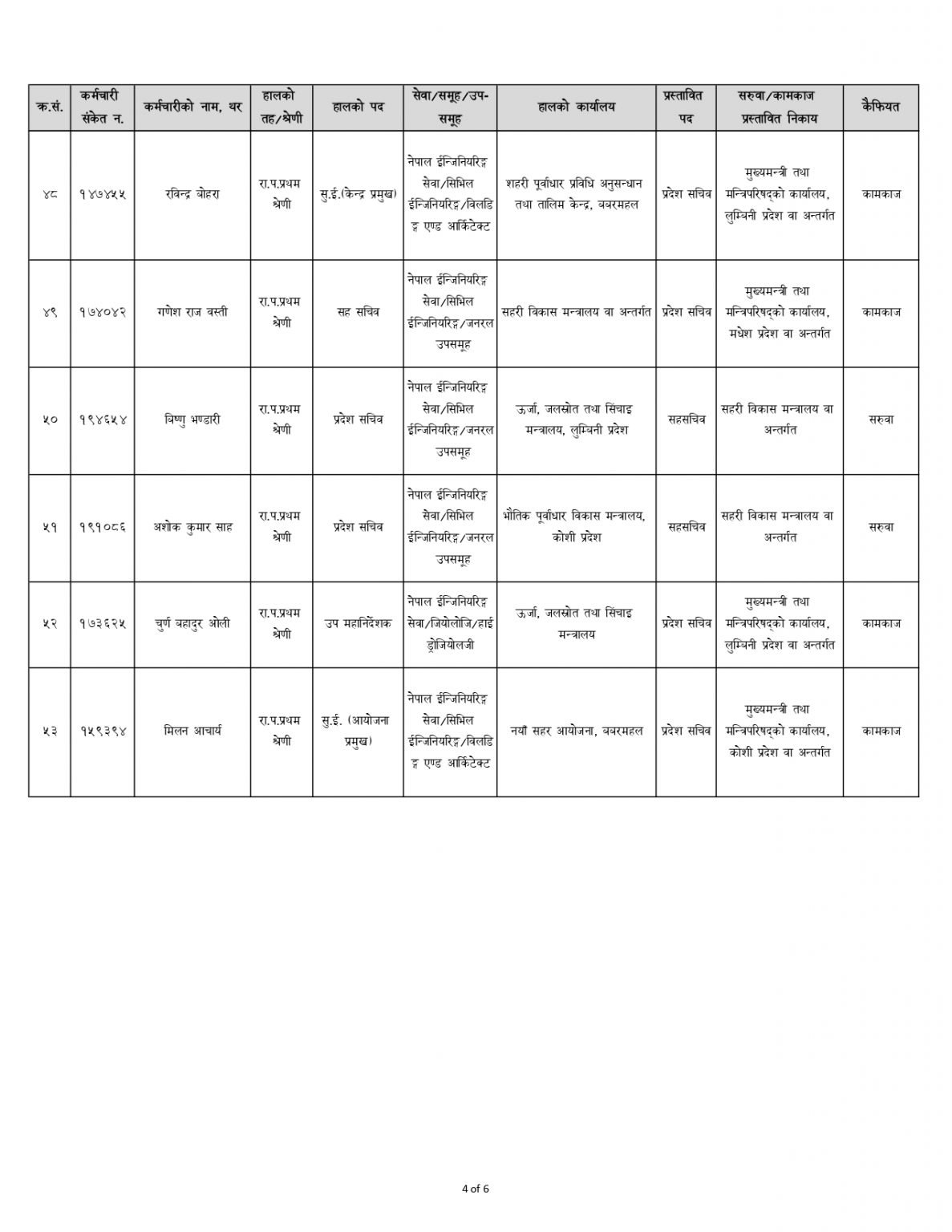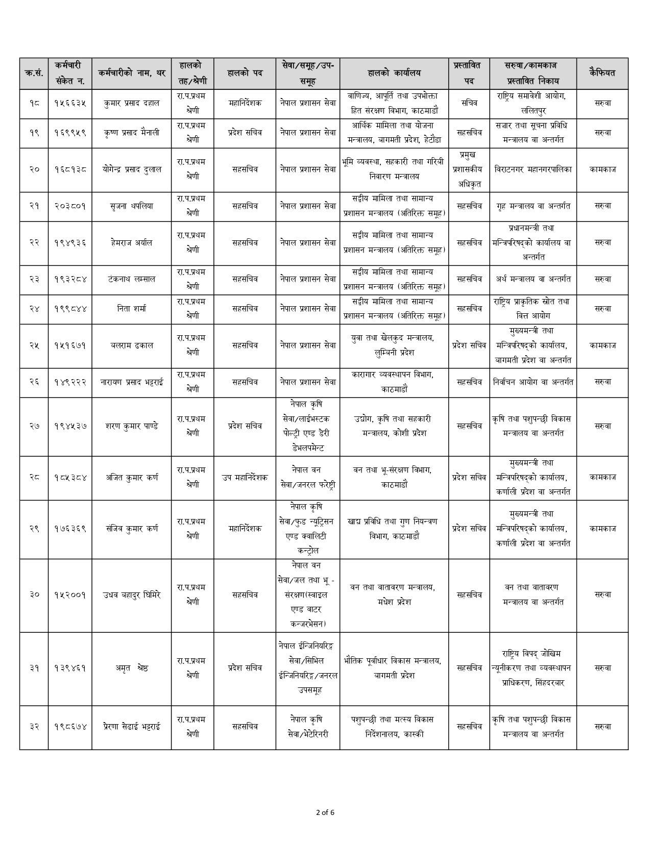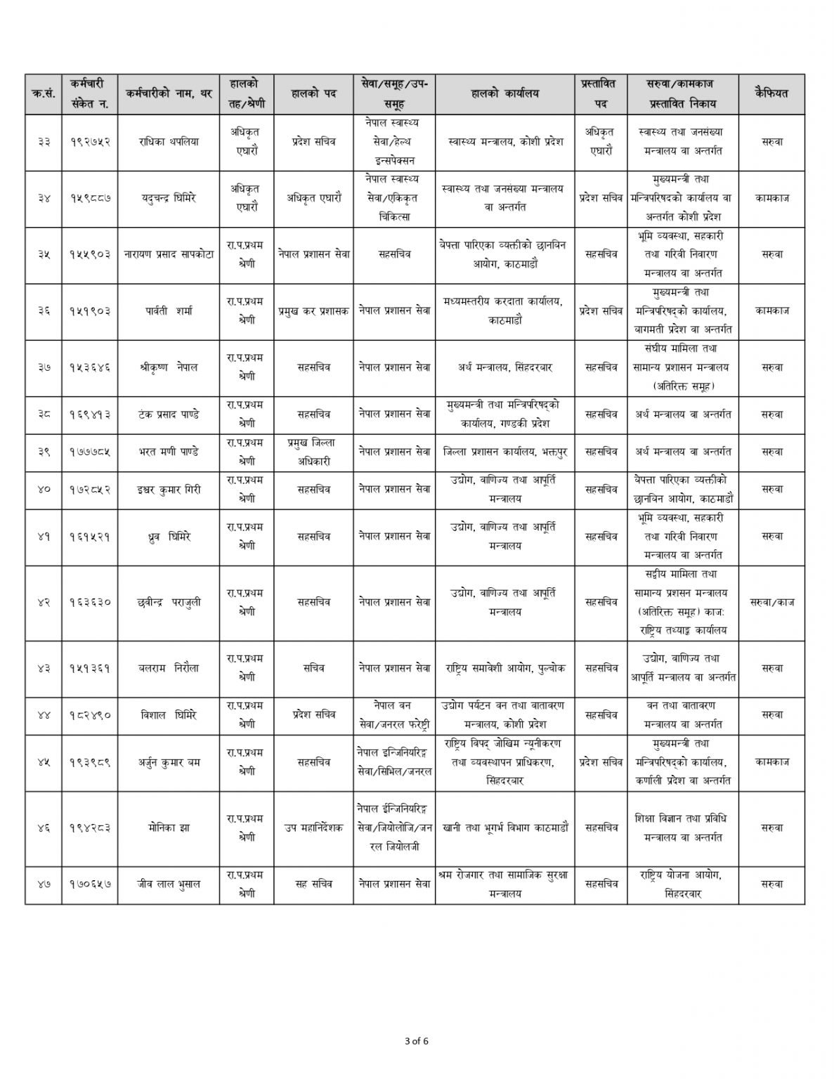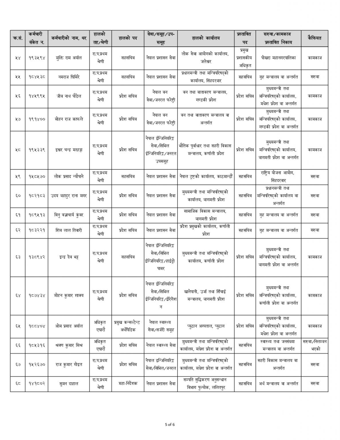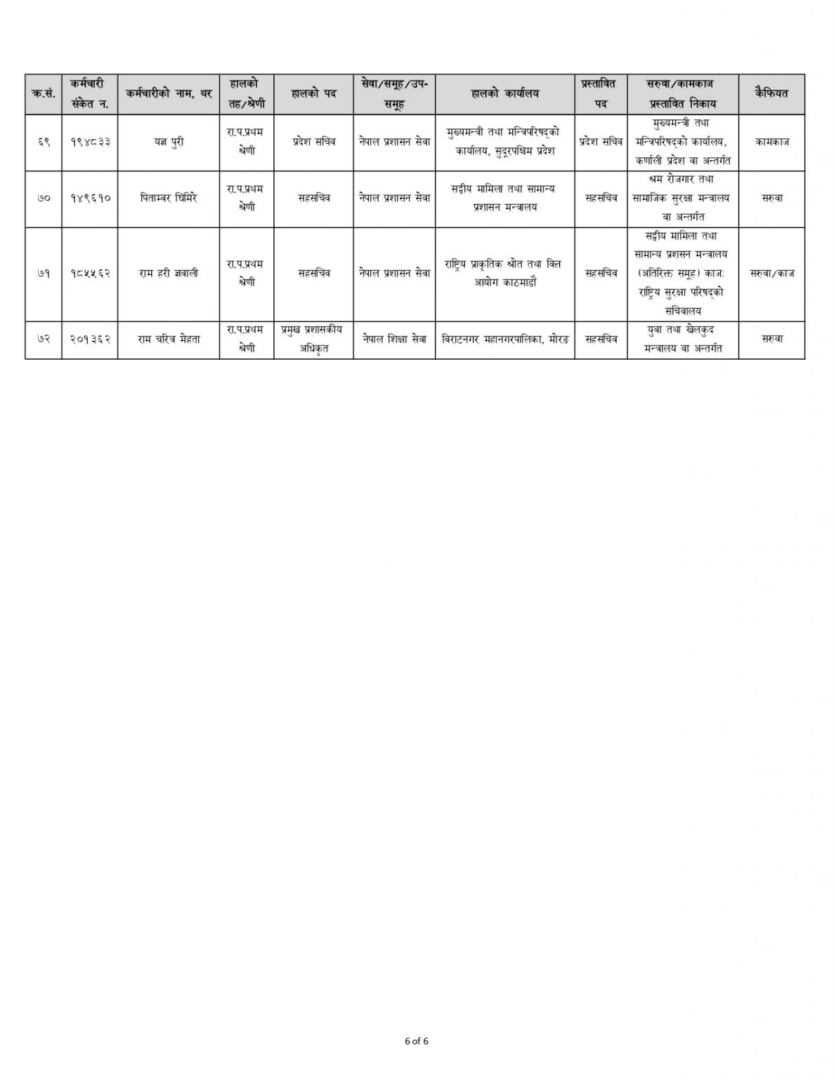 यो निर्णयले विभिन्न मन्त्रालयका सहसचिवहरु हेरफेर भएका छन्। स्वास्थ्य मन्त्रालयमा सहसचिवहरु हेमराज सुवेदी र निता पोखरेल अर्याललाई सरुवा गरिएको छ। यसअघि सुवेदी राष्ट्रिय योजना आयोग र अर्याल निर्वाचन आयोगमा कार्यरत थिए।