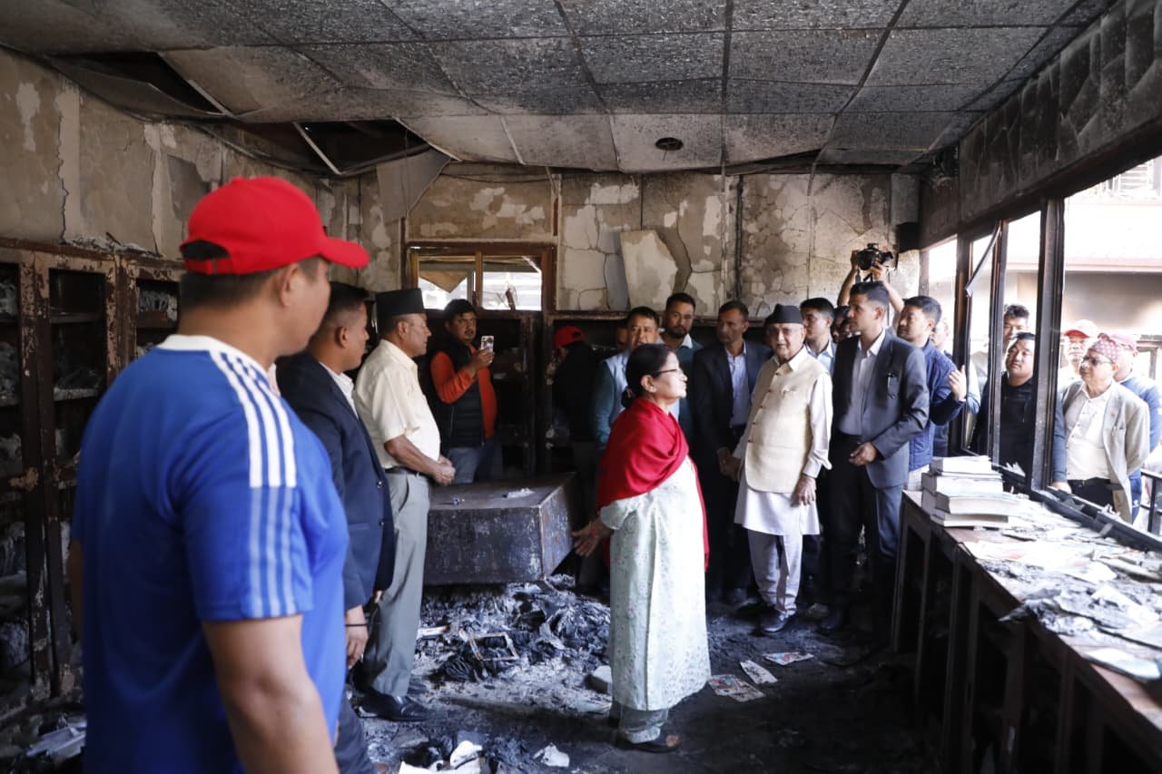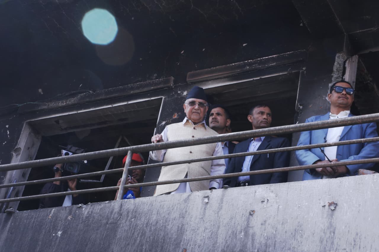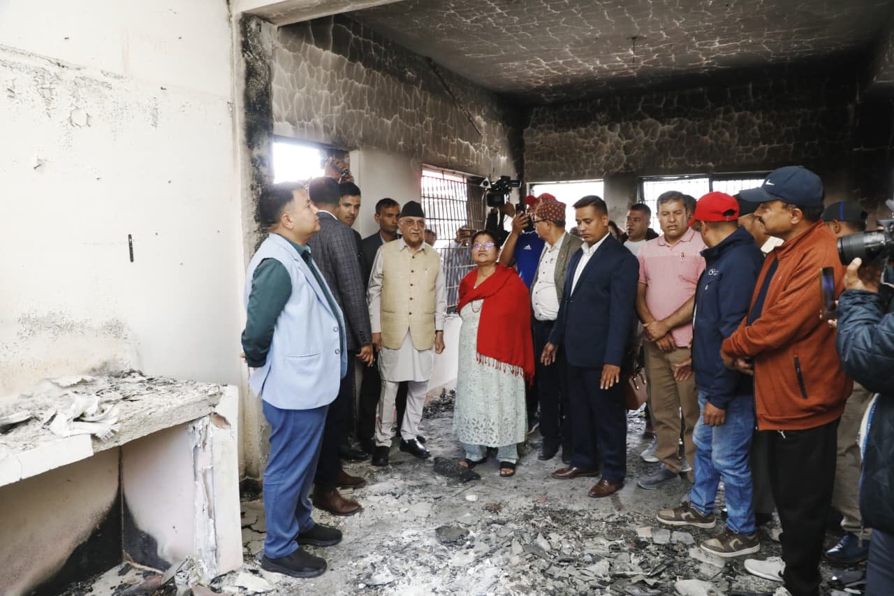 काठमाडौँ । नेकपा (एमाले)का अध्यक्ष केपी शर्मा ओली जेनजी प्रर्दशनका क्रममा आगजनीबाट क्षतिग्रस्त बनेको बालकोटस्थित निजी निवासको अवलोकन गर्न पुगेका छन् । बालकाुटोको घर जल्दा ओली प्रधानमन्त्री थिए ।
