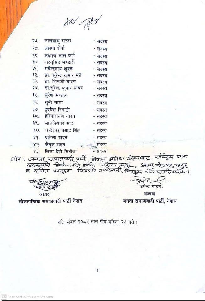 अध्यक्ष यादव र संरक्षक ठाकुरले हस्ताक्षर गरेको सहमतिमा उल्लेख छ।