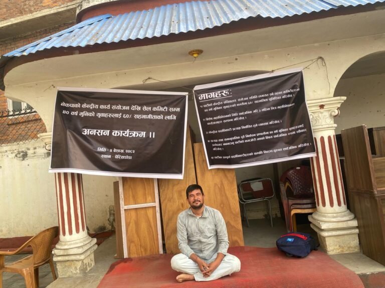 नेकपाको पार्टी कार्यालयमा युवाको ६० प्रतिशत सहभागिता माग गर्दै आमरण अनसन सुरु, फिर्ता लिन प्रचण्ड सचिवालयको दबाब
