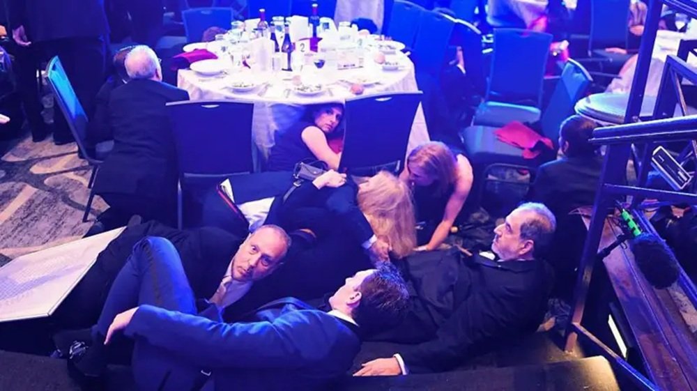 बाहिर गोली चलेपछि गुप्तचर सेवाले अतिथिहरूलाई टेबलमुनि बस्न भनेको थियो।