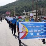 हेटौँडा ।६ साउन । जिल्ला प्रहरी कार्यालय मकवानपुरले आज हेटौँडामा सचेतना र्यालीको आयोजना गरेको छ । कोभिड १९ को प्रकोप नसकिएको र बजारमा मानिसहरुले माक्सको प्रयोग नगरि हिड्न थालेपछि प्रहरीले