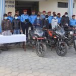 ७ मंसिर । हेटौंडा । महगाँ मोटरसाईकल चोरी गर्ने र लागू औषध गाँजा ओसार्ने ६ जनालाई पक्राउ गरेको छ । उनीहरुलाई आज हेटौंडामा सार्वजनिक गरिएको छ । बिभीन्न स्थानमा मोटरसाईकल