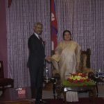 ५ भदौ । काठमाडौं । नेपाल भ्रमणमा रहेका भारतीय विदेशमन्त्री सुब्रमन्यम जयशंकरले राष्ट्रपति विद्या भण्डारीसँग शिष्टाचार भेटवार्ता गरेका छन् । आज बिहीबार बिहान पशुपतिनाथको पूजाआजा गरेपछि जयशंकर राष्ट्रपति भण्डारीलाई भेट्न