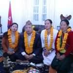 २३ कार्तिक । काठमाडौं । उपराष्ट्रपति नन्दबहादुर पुन ‘पासाङ’ले भाईटीका लगाए । उनले शुक्रबार बिहान ११ः५५ बजे उपराष्ट्रपतिको निवास कपुरधारामा भाईटीका लगाउनु भएको हो । आफ्नो एक दिदी र एक