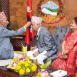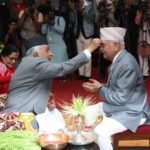काठमाडौँ । राष्ट्रपति रामचन्द्र पौडेलले प्रधानमन्त्री केपी शर्मा ओलीलाई दसैँको टीका जमरा लगाइदिएका छन् । प्रधानमन्त्री ओली राष्ट्रपतिको हातको टीका थाप्न शीतलनिवास पुगेका थिए । प्रधानमन्त्रीसँगै अर्थमन्त्री विष्णु पौडेललाई पनि